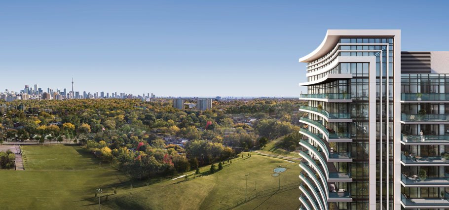 The modern point tower offers open-concept interiors with stunning city and park views.
